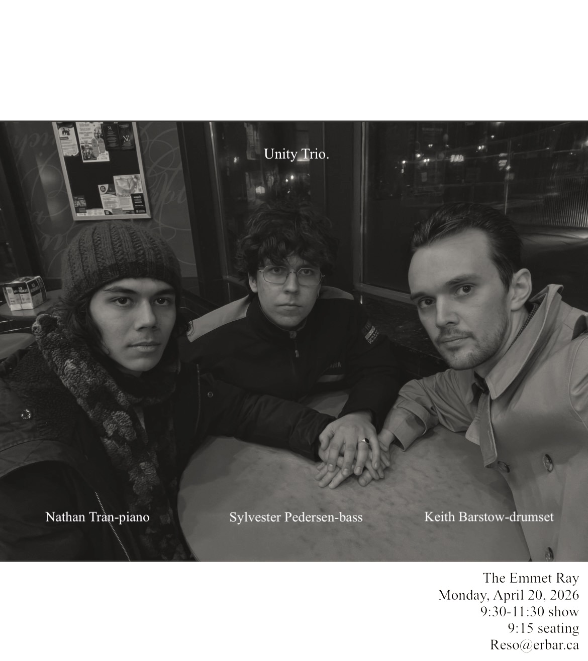 Unity Trio is a new band formed in Toronto in 2026. They play modern, swinging music based in the jazz tradition.