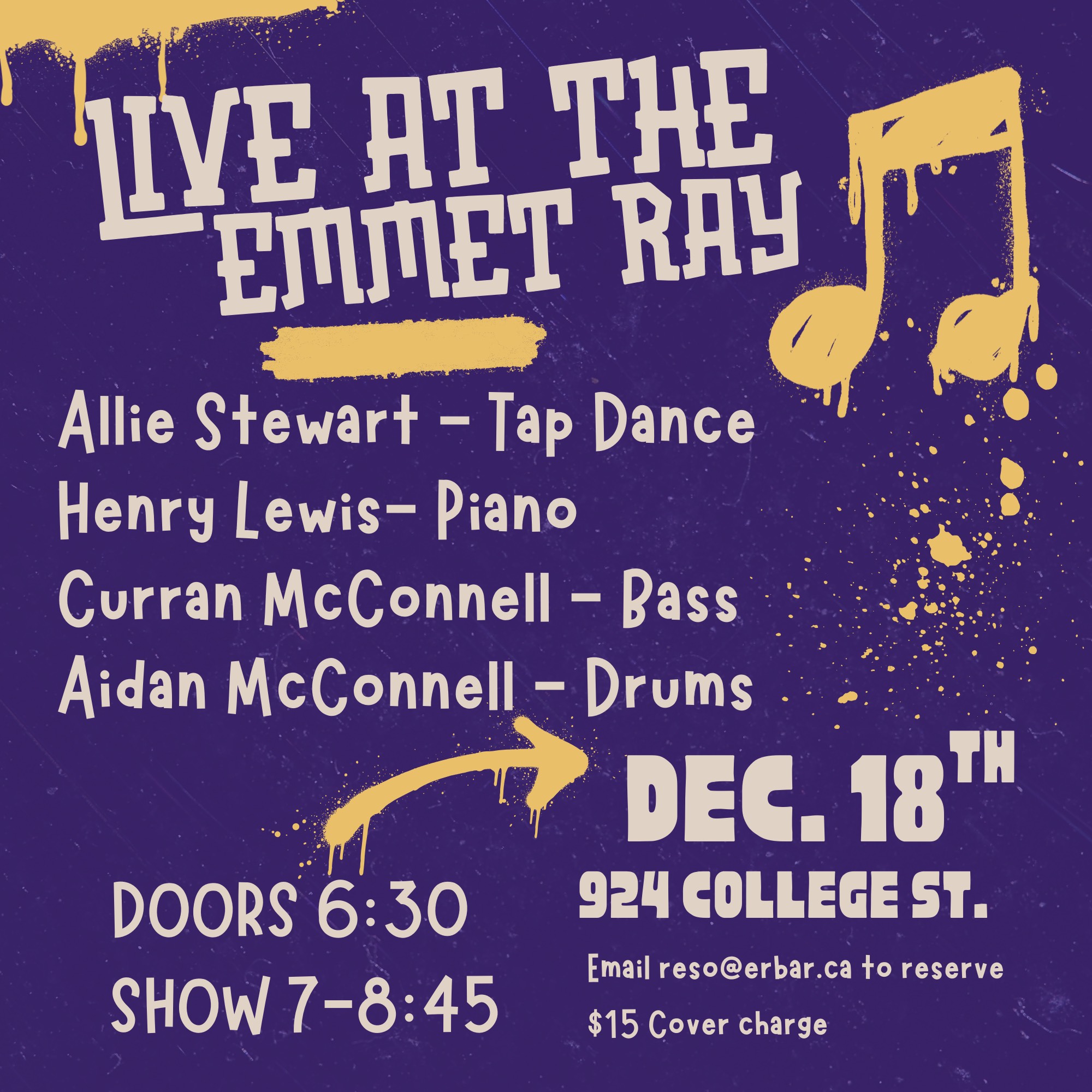 An evening of timeless jazz standards performed by a dynamic quartet of Toronto-based musicians. This setlist celebrates jazz music along with its connective roots with tap dance, highlighting the rhythmic dialogue between the two. Come join us to hear a mix of blues, waltz, up-tempo swings, and latin grooves.