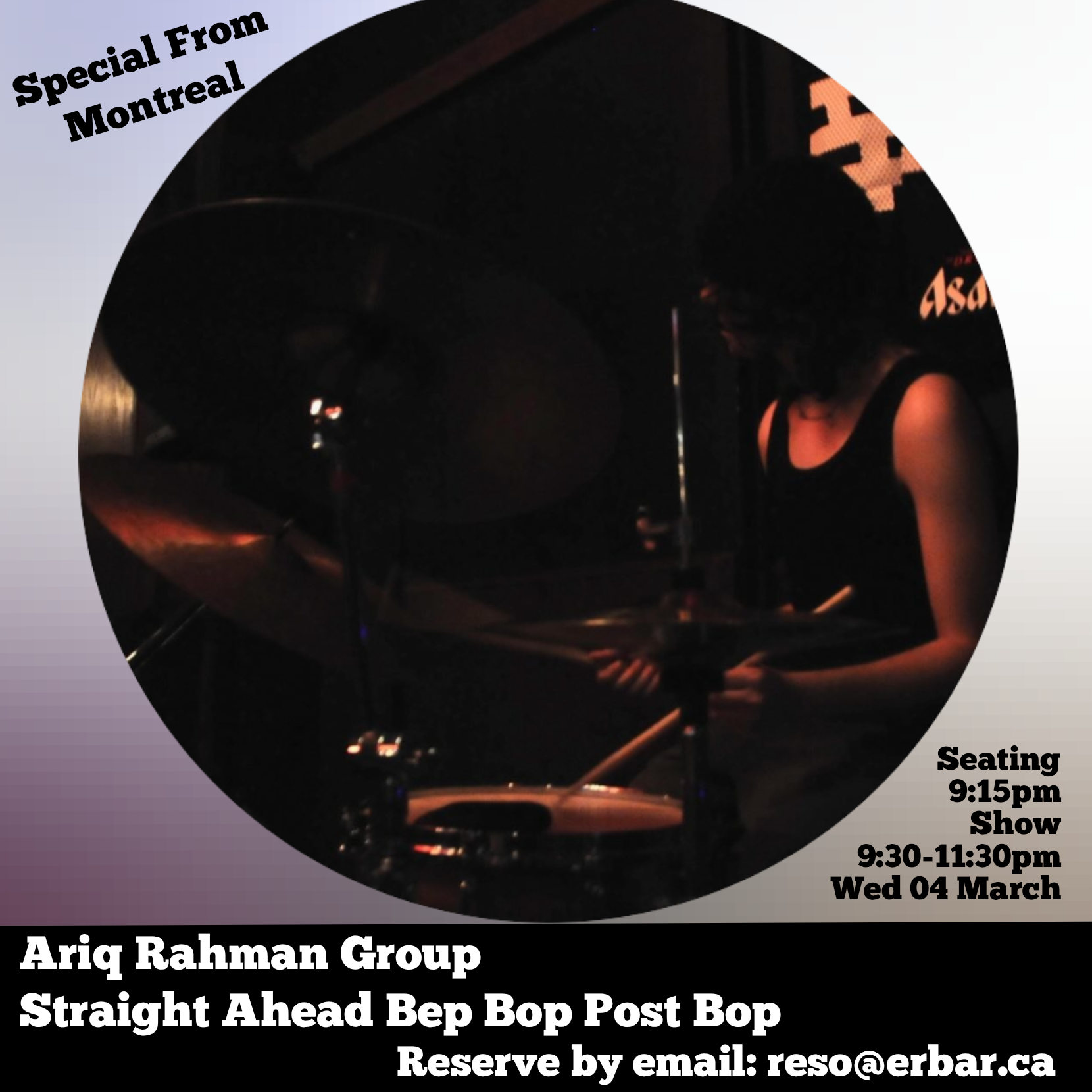 Band is half Toronto musicians and half Montreal musicians. Ariq is originally from Toronto, but will bringing his friend up to experience the toronto Jazz culture and play with the local musicians.