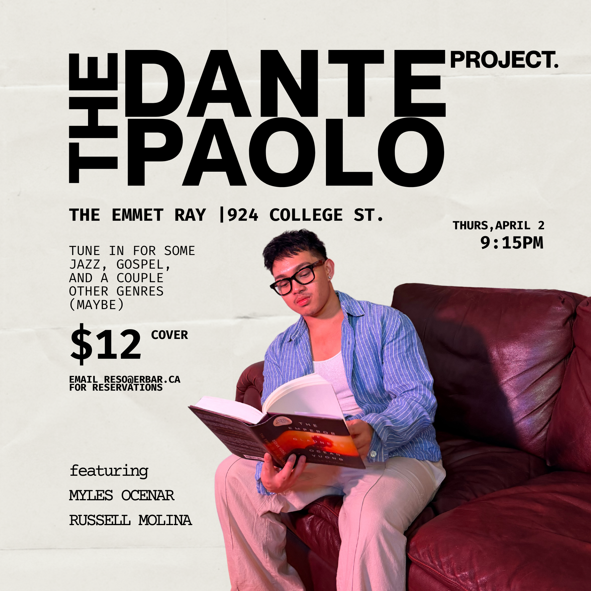 Dante Paolo is a fourth-year student at York University’s Music Program. During his time at york, he’s explored different genres such as classical, jazz, and Gospel to expand his vocal and musical vocabulary. This show is a celebration of the learnings and discoveries he’s made.
