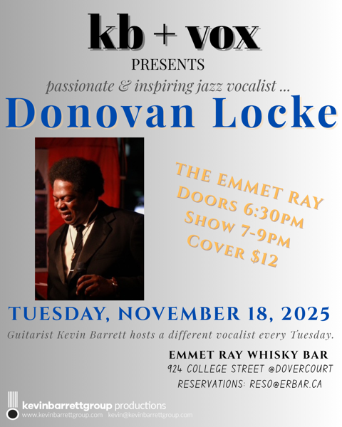 Kevin Barrett be hosting a weekly early-Tuesday-evening series at the Emmet Ray (College & Dovercourt), featuring a different singer each week. Kevin is privileged to be able to make music with some of the finest vocalists anywhere, and really happy to have a regular chance to do so. Please come out, enjoy the Emmet Ray’s beautiful room and fine food & drink menu, and hear some great music.
