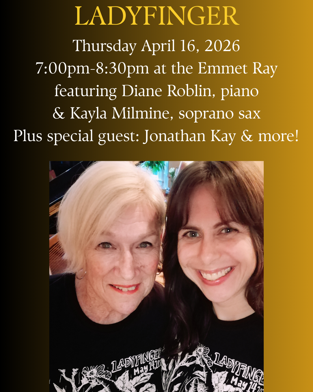 Ladyfinger with Diane Roblin,keys; Kayla Milmine soprano sax; with special guests Jonathan Kay and more