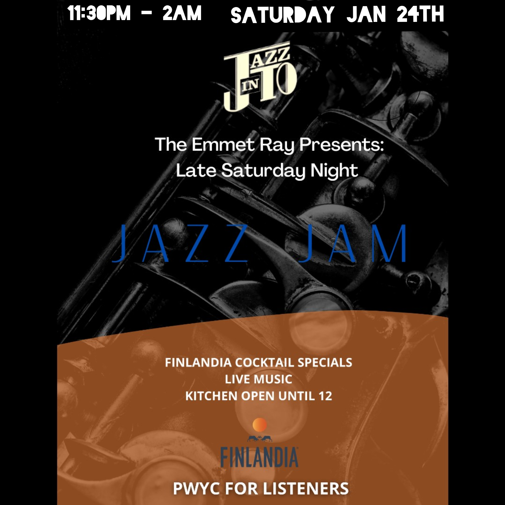 Late Night Jazz Jam *FREE* for Jammers, presented by JazzInToronto, Sponsored by Bushmills Whiskey