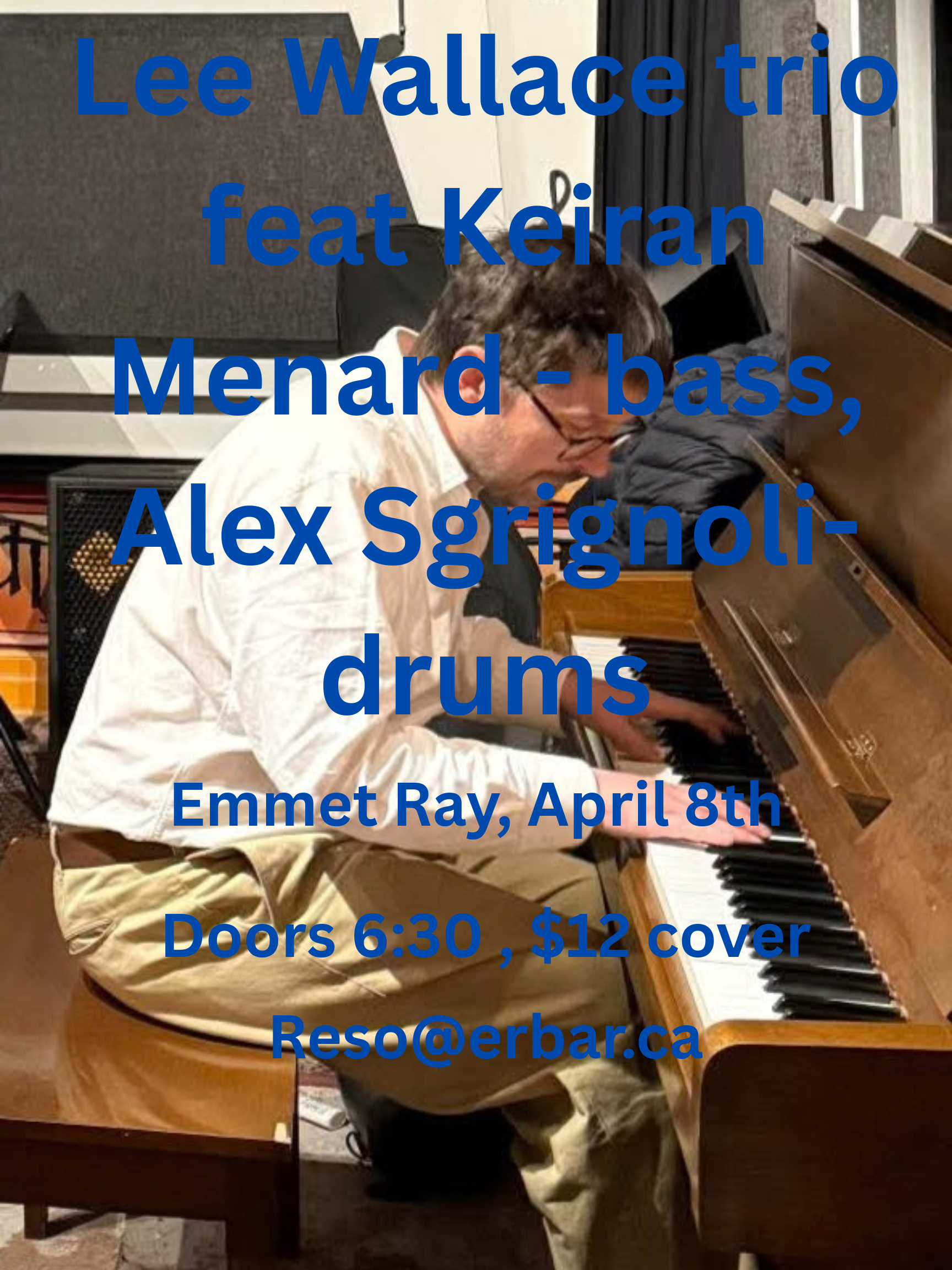 Lee Wallace is an in demand pianist on the Toronto scene. He trained classically, achieving an ARCT in both piano performance and pedagogy, and also studied in New York with legendary jazz pianists Steve Ash, Michael Weiss, and Jeb Patton. He gigs regularly as a sideman, and is now leading a trio, as a vehicle for developing a personal take on standard repertoire, featuring Keiran Menard on bass, and Alex Sgrignoli on drums, both accomplished rhythm section aces.