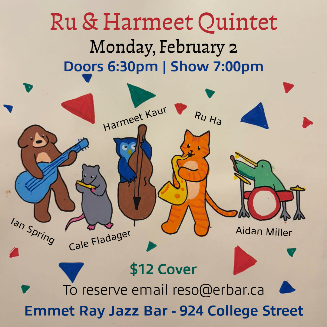 Ru and Harmeet both believe in the power of expression through music and make an effort to create something meaningful that resonates with any listener. For their set, they will be performing a variety of each other’s compositions with their quintet. Through their compositions listeners will be transported to a beautiful sonic space that explores the sounds of colours, nature, and emotions.