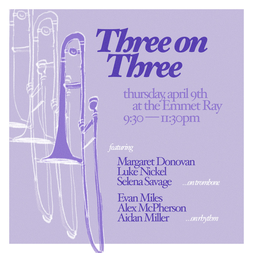 A new band in town! Playing original arrangements of jazz standards by Margaret Donovan and Selena Savage, we hope to pay hommage to some of the great jazz trombonists and celebrate this new generation of up and coming musicians in the scene